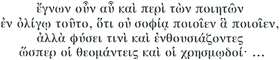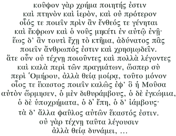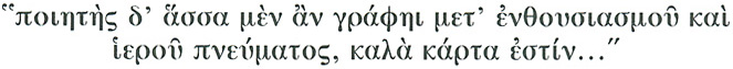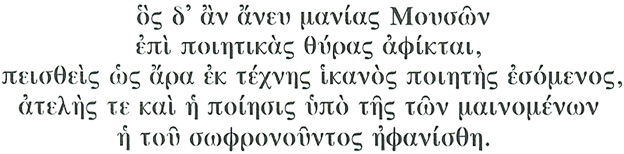 Negat sine furore Democritus quemquam poetam magnum esse posse. (Cicero - De divinatione 1, 80) |