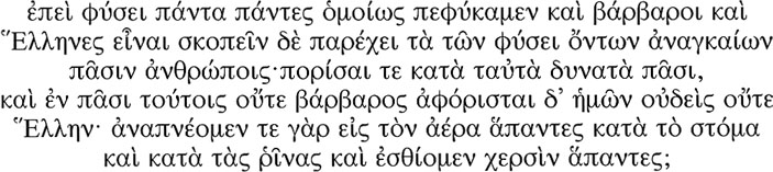 Ille versus et in pectore et in ore sit: Homo sum, humani nihil a me alienum puto. Cohaereamus: in commune nati sumus; societas nostra lapidum fornicationi simillima est quae casura nisi invicem obstarent, hoc ipso sustinetur. Seneca - Ad Lucilium ep. mor. 95, 53 |