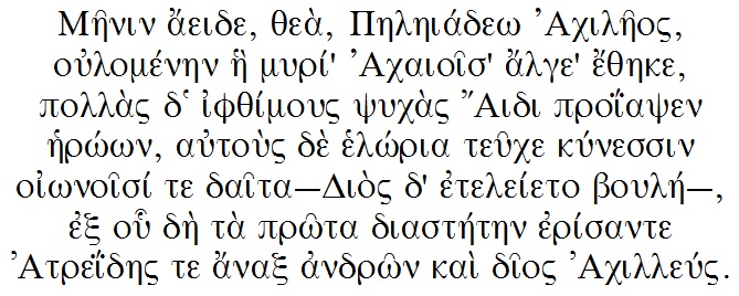 (Homer – Beginn der Ilias) | ||||||||||||||||||||||||||||||||||||||||||||||