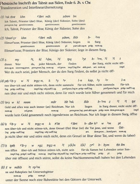 Inschrift auf dem Sarkophag Tabniths,