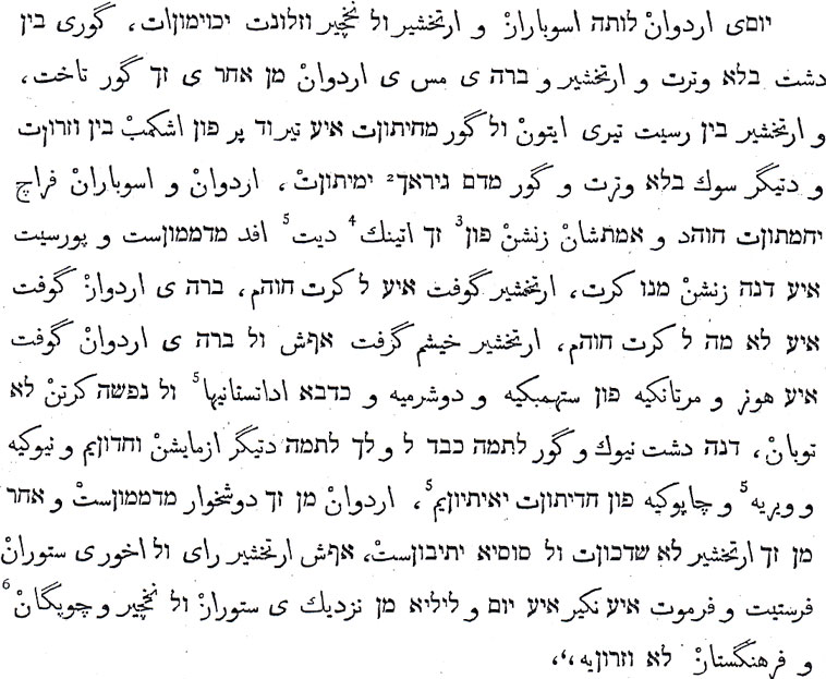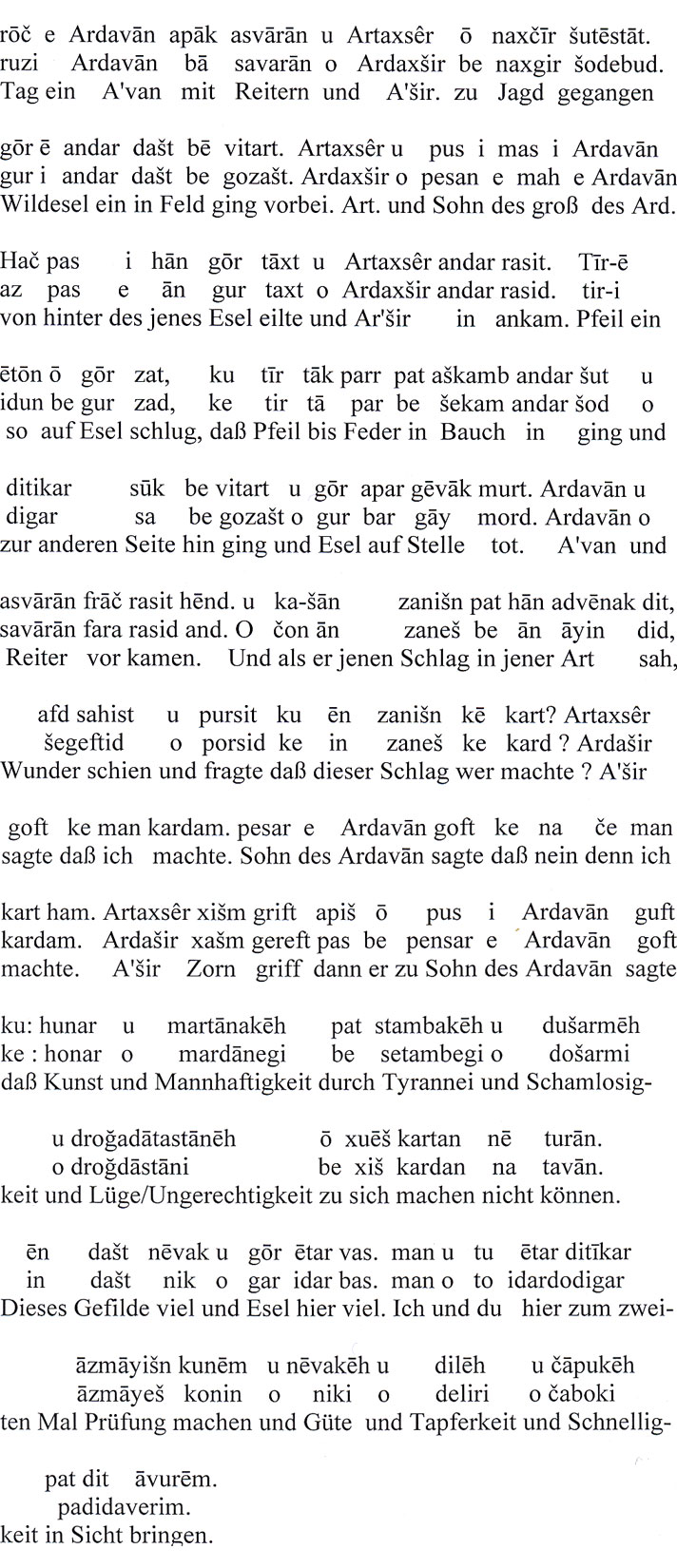 (Die iranischen Elemente sind in iranischer Schrift wiedergegeben, die Ideogramme in hebräischer Schrift.) |