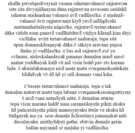 "Herren, durch mich, der ich eine Myriade Tamilen getötet und einen so großen Krieg geführt habe,
