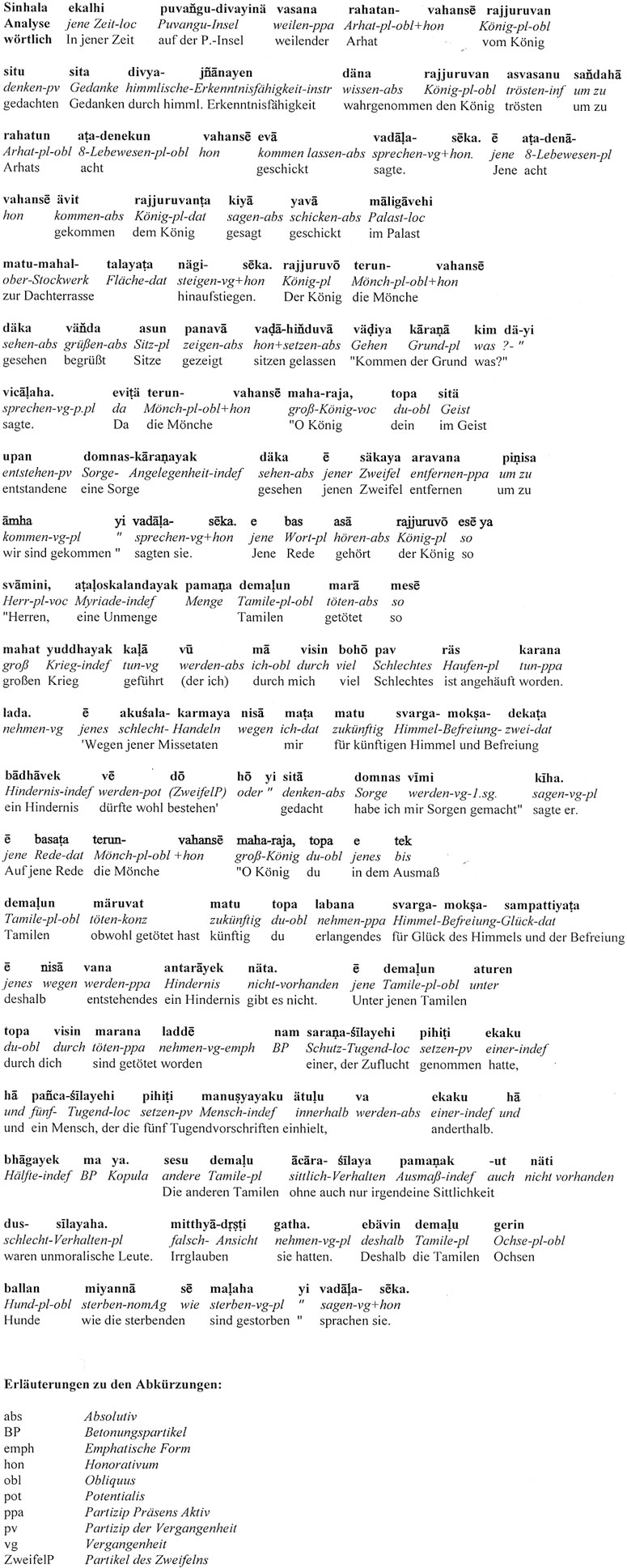 Auf diese Worte hin sagten die Mönche: "König, obwohl du so viele Tamilen getöet hast, besteht